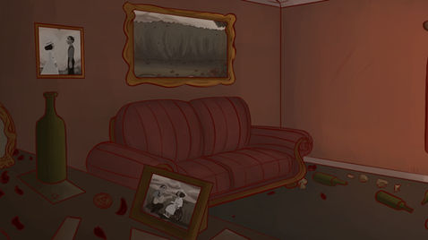 Along with the square shape being seen everywhere in his home, I went for a warm color palette that contrasts his cool color scheme, but dropped the saturation and the brightness to best portray his emotional state.